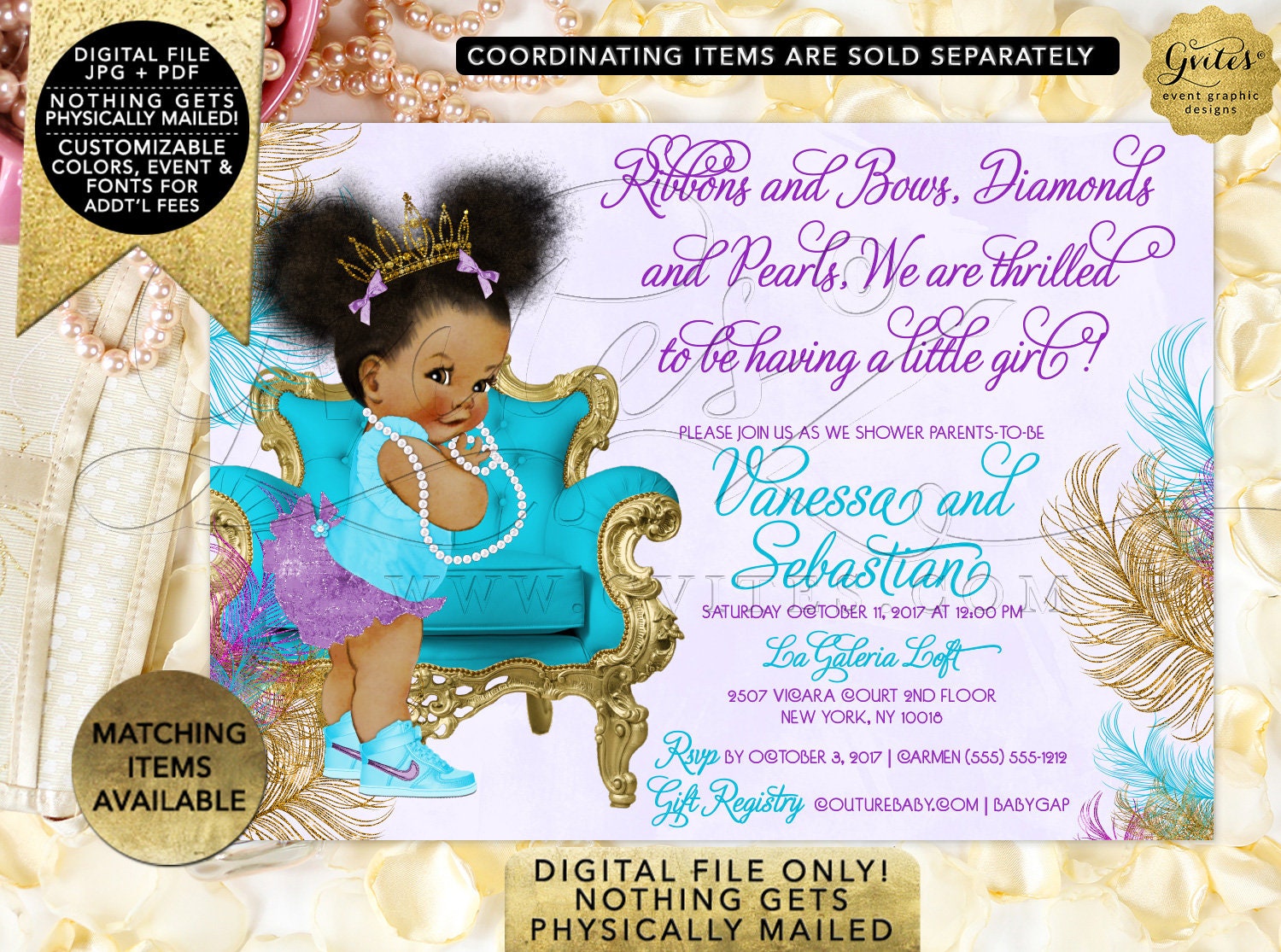 Princess Baby Shower Invitation, Baby purple and gold baby shower