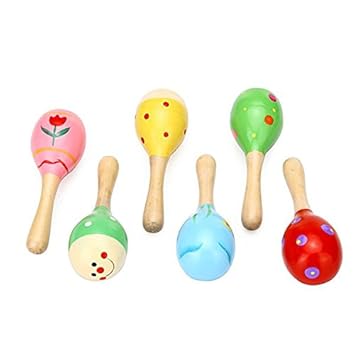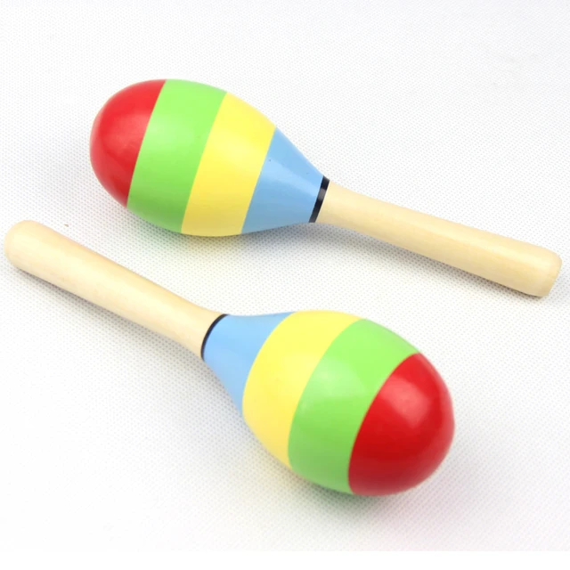 1PC Colorful Wooden Maracas Baby Child wooden baby maracas rattle