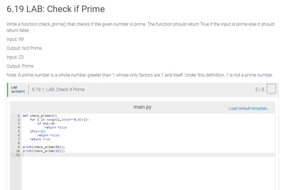 Solved: 6.19 LAB: Check If Prime Write black lab checks