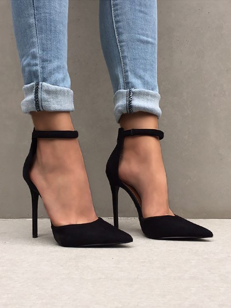 short black heels with ankle strap