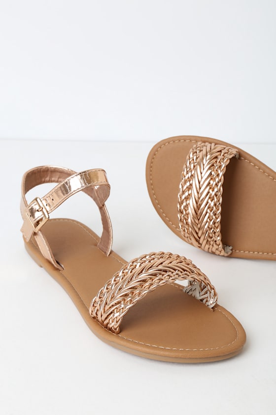 Cute Rose Gold Sandals - Flat Sandals gold woven sandals