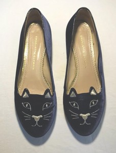 Women Olympia Kitty Cat Velvet Flats royal blue and gold loafers