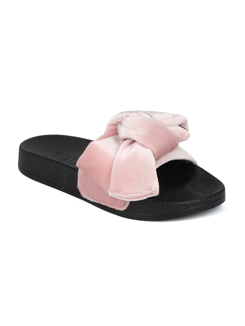Women velvet Open Toe Bow Tie Footbed footbed sandals with bow