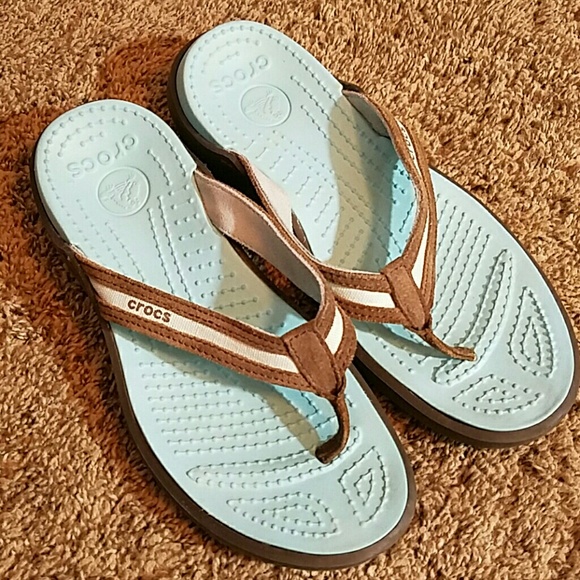 Crocs Sz 6 Brown Aqua Blue Flip Flop crocs blue flip flops