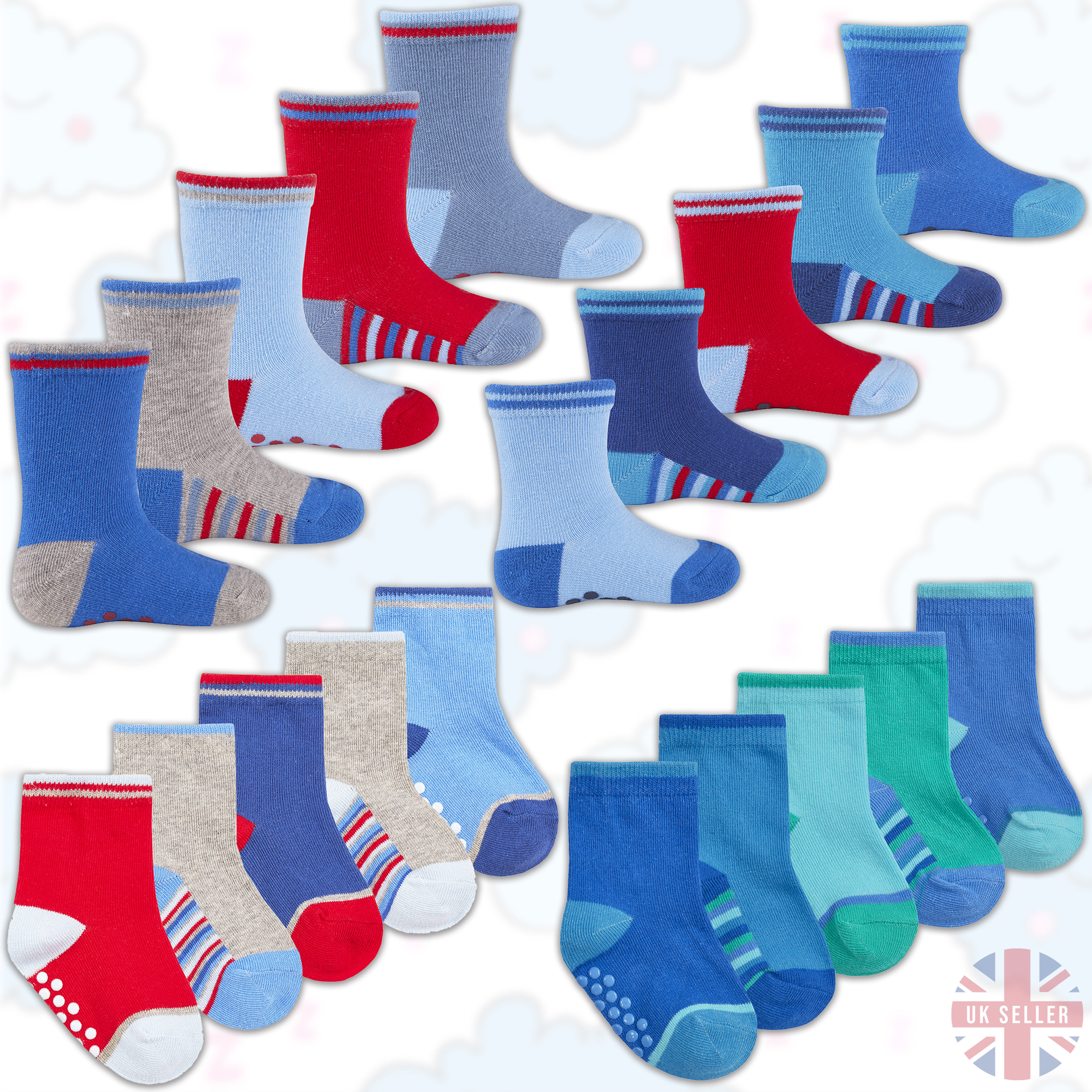 Baby Boys Blue Heel Toe Cotton Socks anti heel slip socks